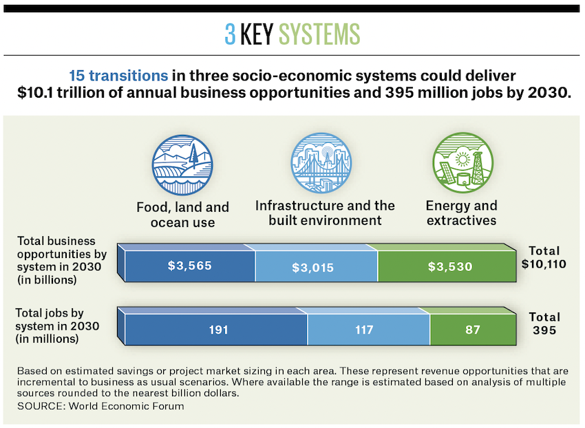 Collectively, these systems represent more than one-third of the global economy and two-thirds of all jobs, and they endanger around 80% of threatened or near-threatened species. Improvements in these systems will produce outsized impact.